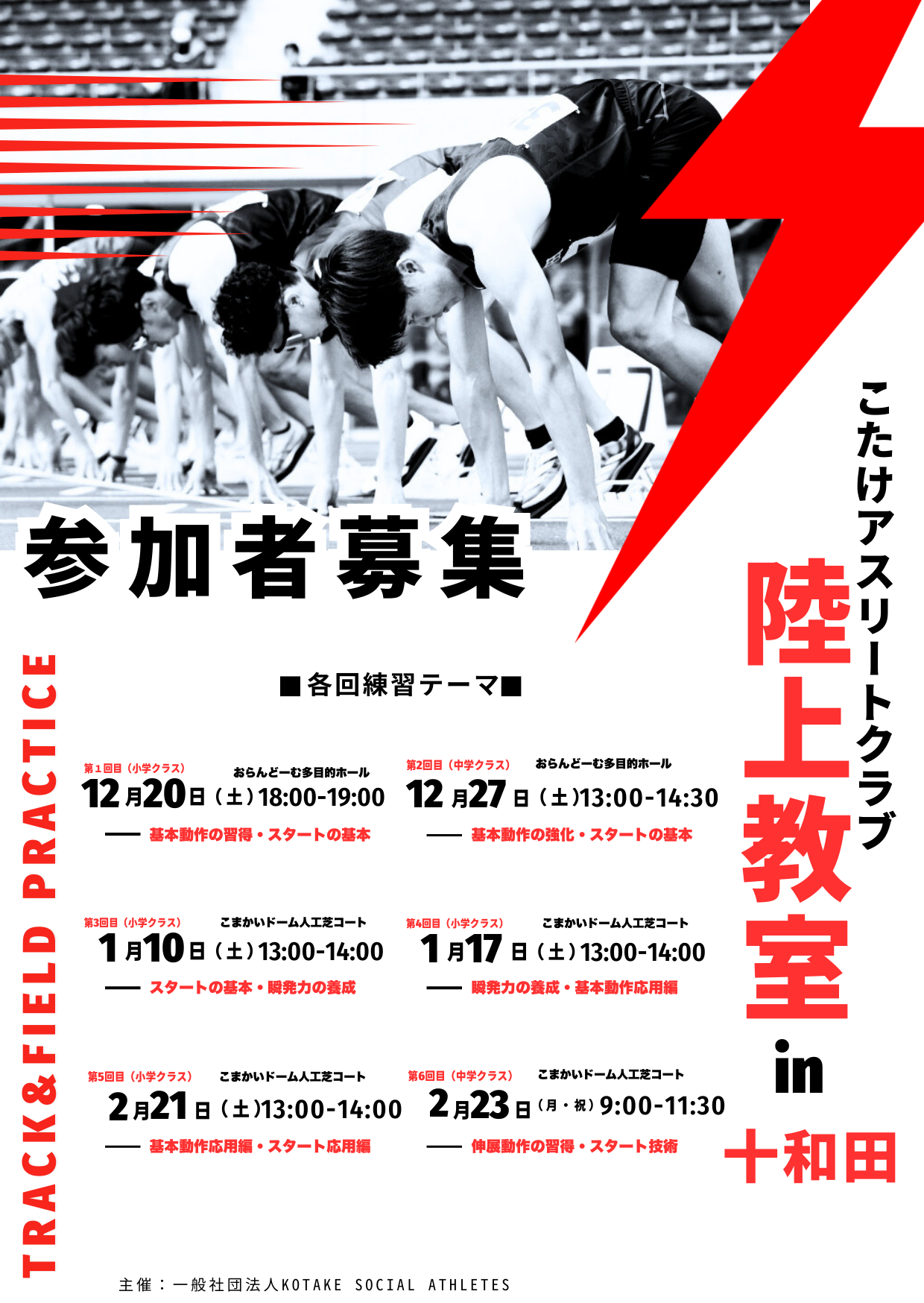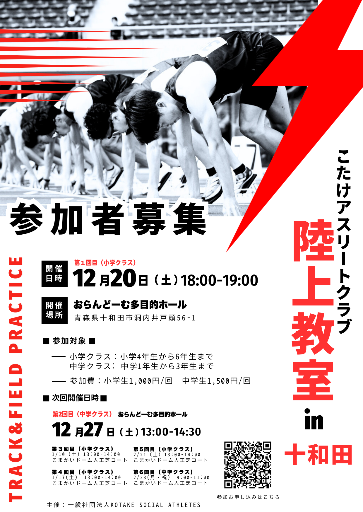 12月よりこたけアスリートクラブ主催の十和田陸上教室を開催いたします!